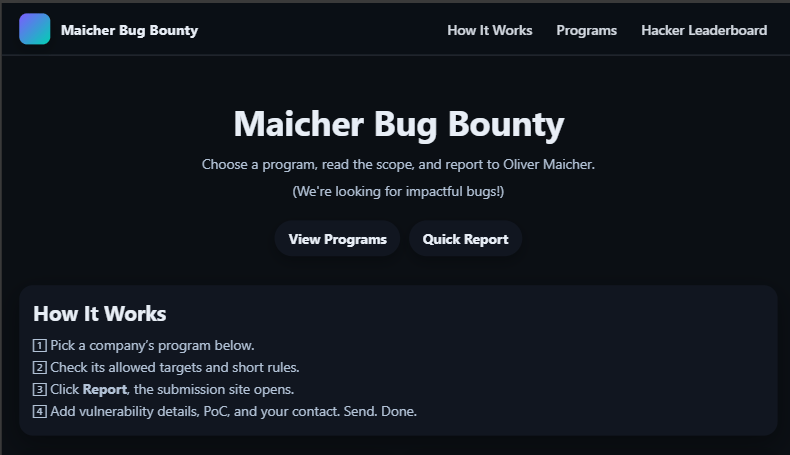 New programs, new submission: bugs.olivermaicher.eu